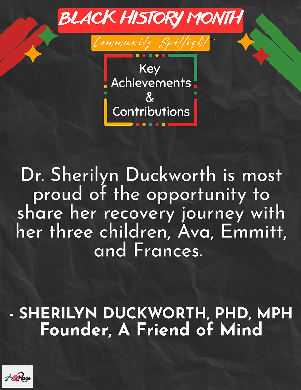We present our final highlight for the 2026 A. Rose NFP Black History Month Community Spotlight Campaign, Sherilyn Duckworth, PhD, MPH!